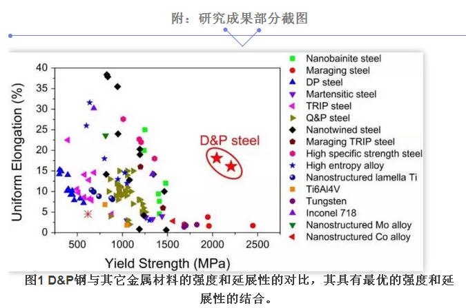 這項研究被譽為京港臺三地科學家精誠合作的典型成功范例,其中香港大學黃明欣博士團隊前瞻性地提出通過提高位錯密度可同時實現提高強度和延展性的創新理論;羅海文教授團隊成功地在鋼材中引入了大量的可移動位錯;臺灣大學顏鴻威團隊通過材料的先進表征技術證實了上述理論的正確性。根據該發明的新成分與工藝,他們已申報了三項相關專利。