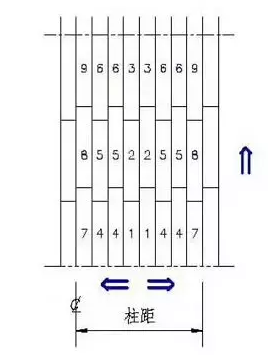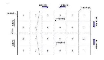 4、整體掃雪順序:應從屋面的檐口向屋脊方向進行,從兩邊山墻向建筑中間方向進行,按下圖順序分快清掃,直到將所有積雪清除。